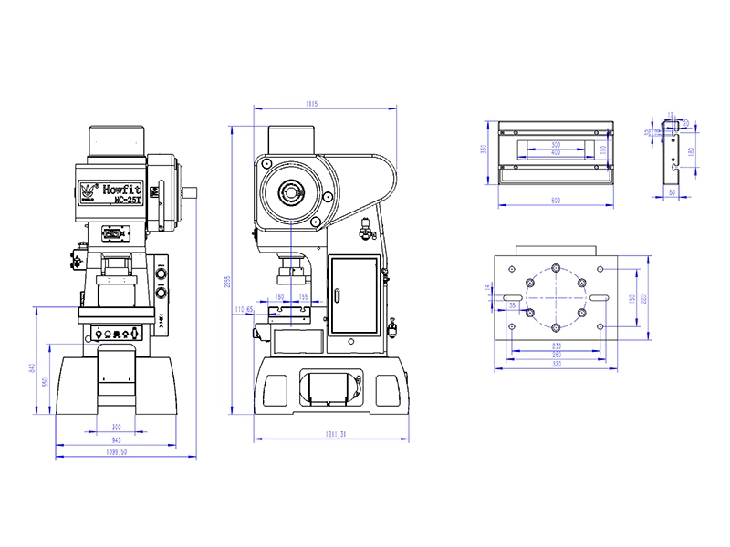 La prensa de alta velocidad con bastidor en C y tres postes guía ofrece una capacidad de 25 toneladas con un rango de carrera de 20 a 40mm y velocidades de 200 a 700 carreras por minuto. Cuenta con una mesa de trabajo de 600×330mm, una corredera de 320×220mm y una salida de chatarra de 100×400mm. Compacta pero potente, esta prensa de estampado de metal garantiza un funcionamiento estable y preciso para el estampado continuo a alta velocidad de rotores, estatores, marcos de cables, piezas de hardware y tapas de latas.